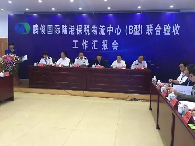 2017年6月30日,由昆明海關(guān)、財(cái)政部駐云南省財(cái)政監(jiān)察專員辦事處、云南省國家稅務(wù)局、國家外匯管理局云南省分局組成的聯(lián)合驗(yàn)收組,聽取了騰俊國際陸港保稅物流中心建設(shè)情況匯報(bào),對中心基礎(chǔ)和監(jiān)管設(shè)施建設(shè)情況進(jìn)行逐項(xiàng)檢查,觀看有關(guān)設(shè)施功能演示,審閱相關(guān)文檔資料,經(jīng)綜合評審,宣布中心通過聯(lián)合驗(yàn)收。